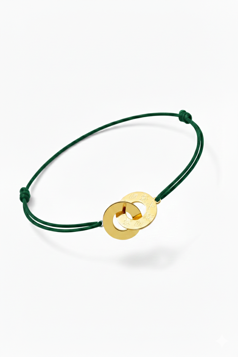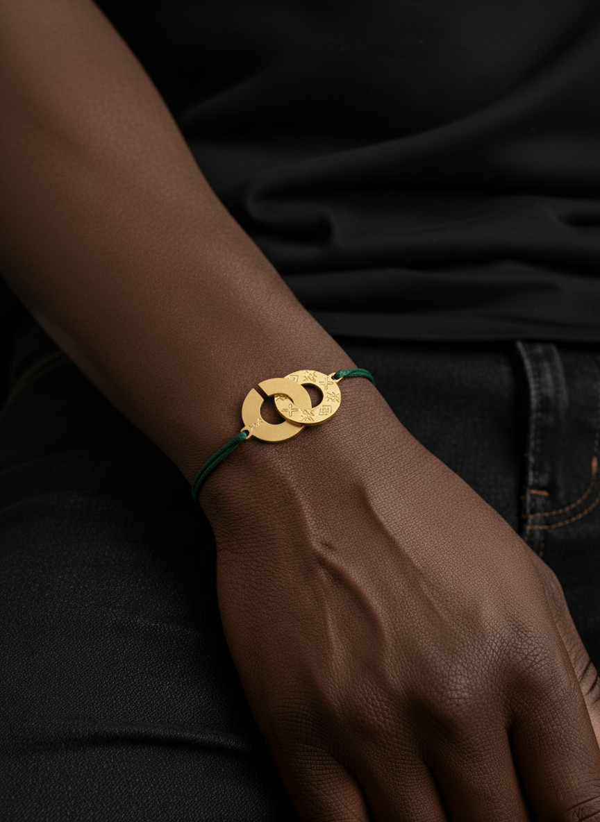 Bracelet cordon anneaux entrelacés Plaqué or gravures ashanti