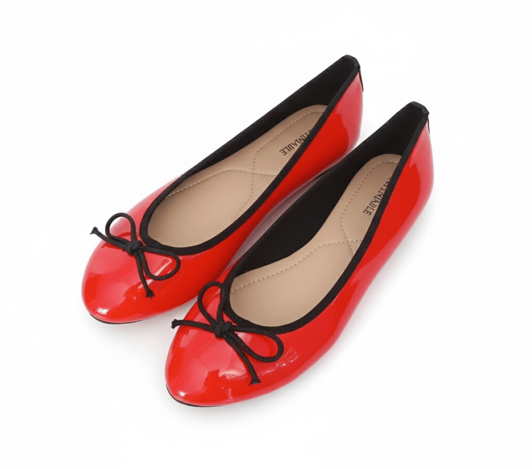 Ballerines à nœud SANKOFA cherry en cuir végan. Modèle SANKOFA avec bout en amande rapporté et nœud décoratif.