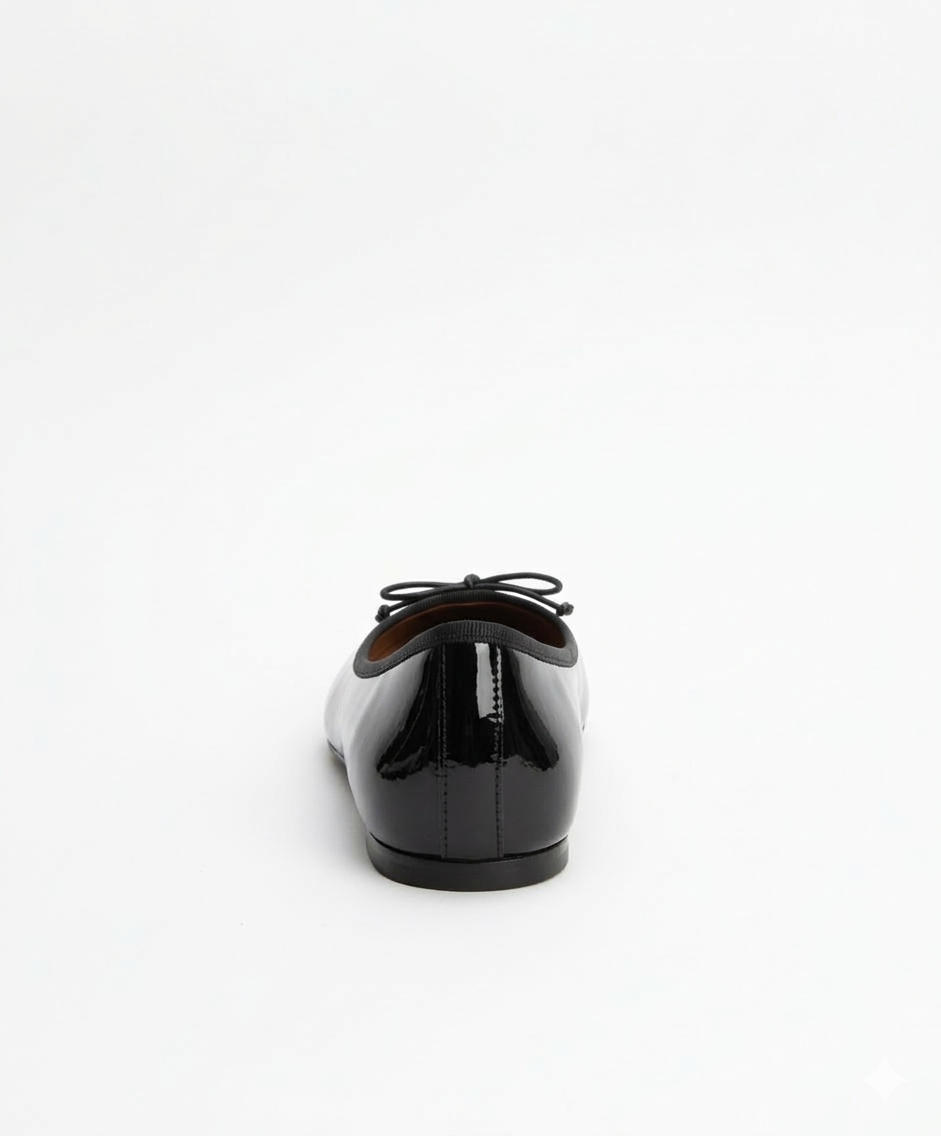 Ballerines noires vernies SANKOFA classiques en cuir végan. Modèle SANKOFA avec bout en amande rapporté et nœud décoratif.