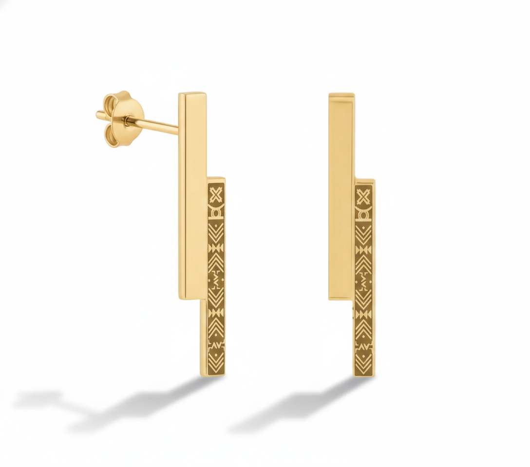 Boucles pendantes OHENEBA 3D en Plaqué Or 18 carats gravures ashanti