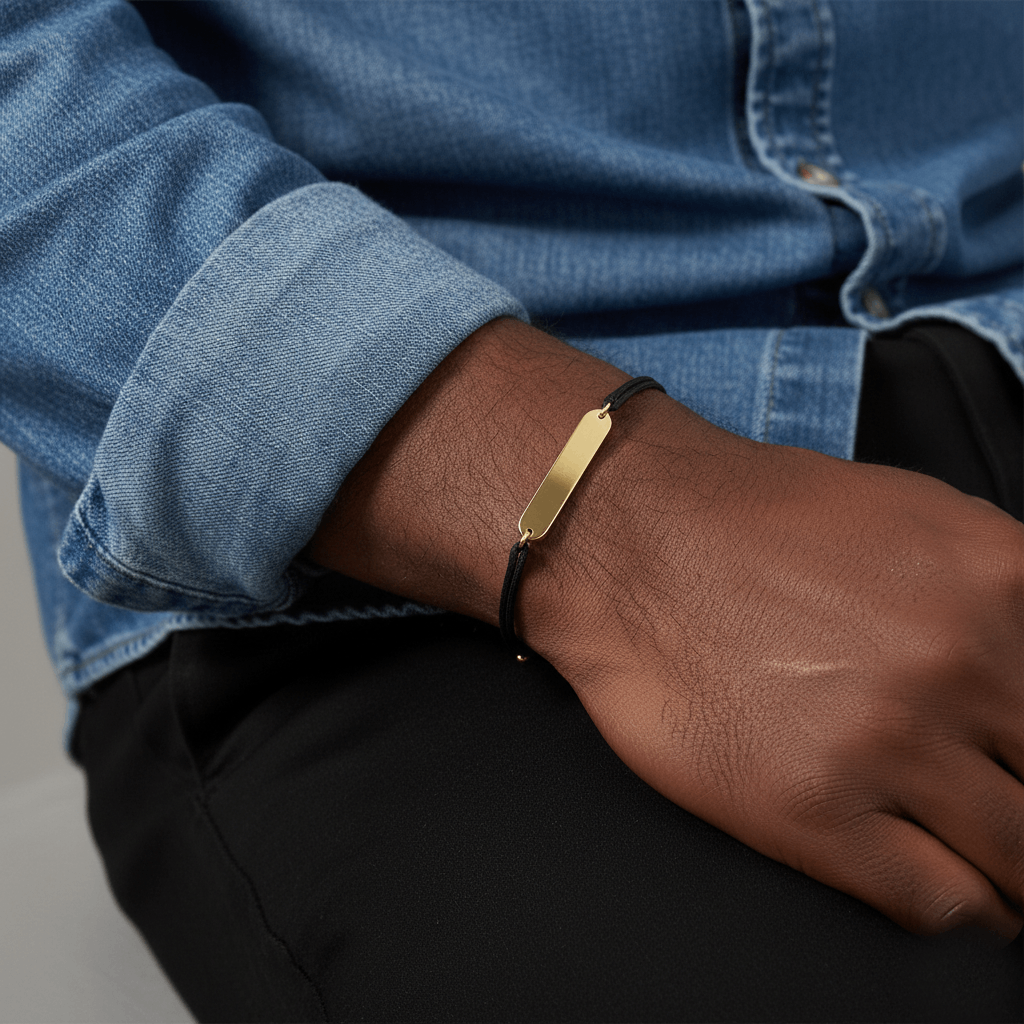 Bracelet Kelyan- barre Or plaqué & cordon ajustable