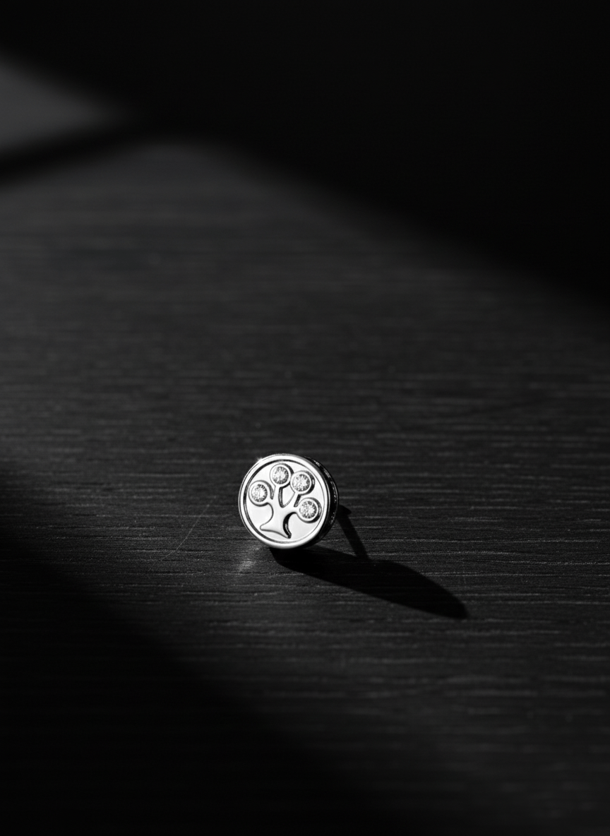 Charm arbre de vie plein en laiton plaqué or blanc 18 carats rhodié et ses 4 cristaux sur chaque face