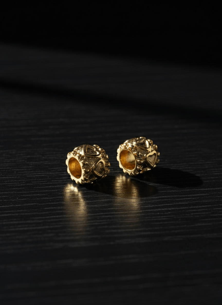 Charm espaceur décoré de coeurs en relief en laiton plaqué or blanc 18 carats rhodié