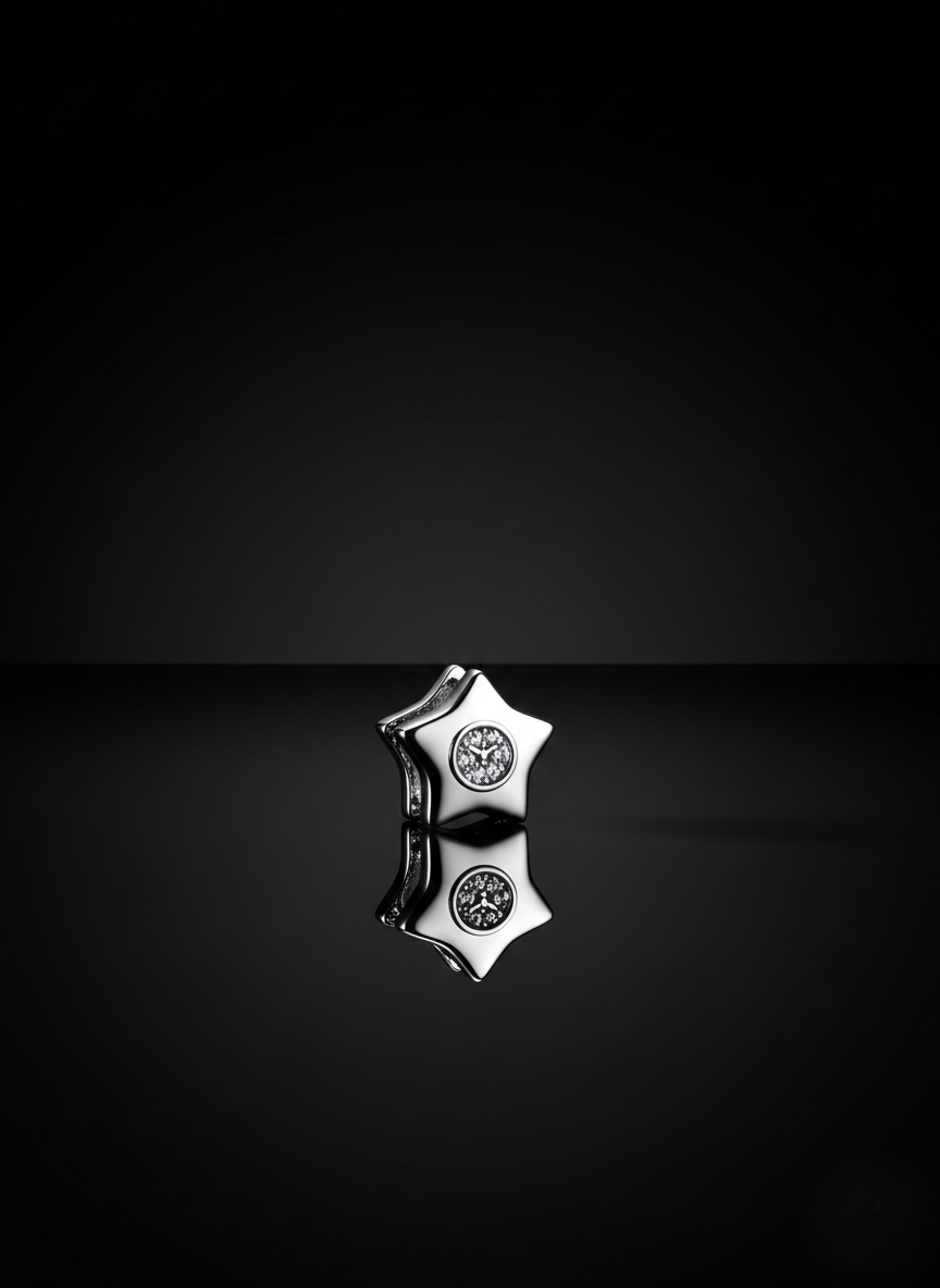Charm en forme d’étoile plein en laiton plaqué or blanc 18 carats rhodié et son cristal sur chaque face