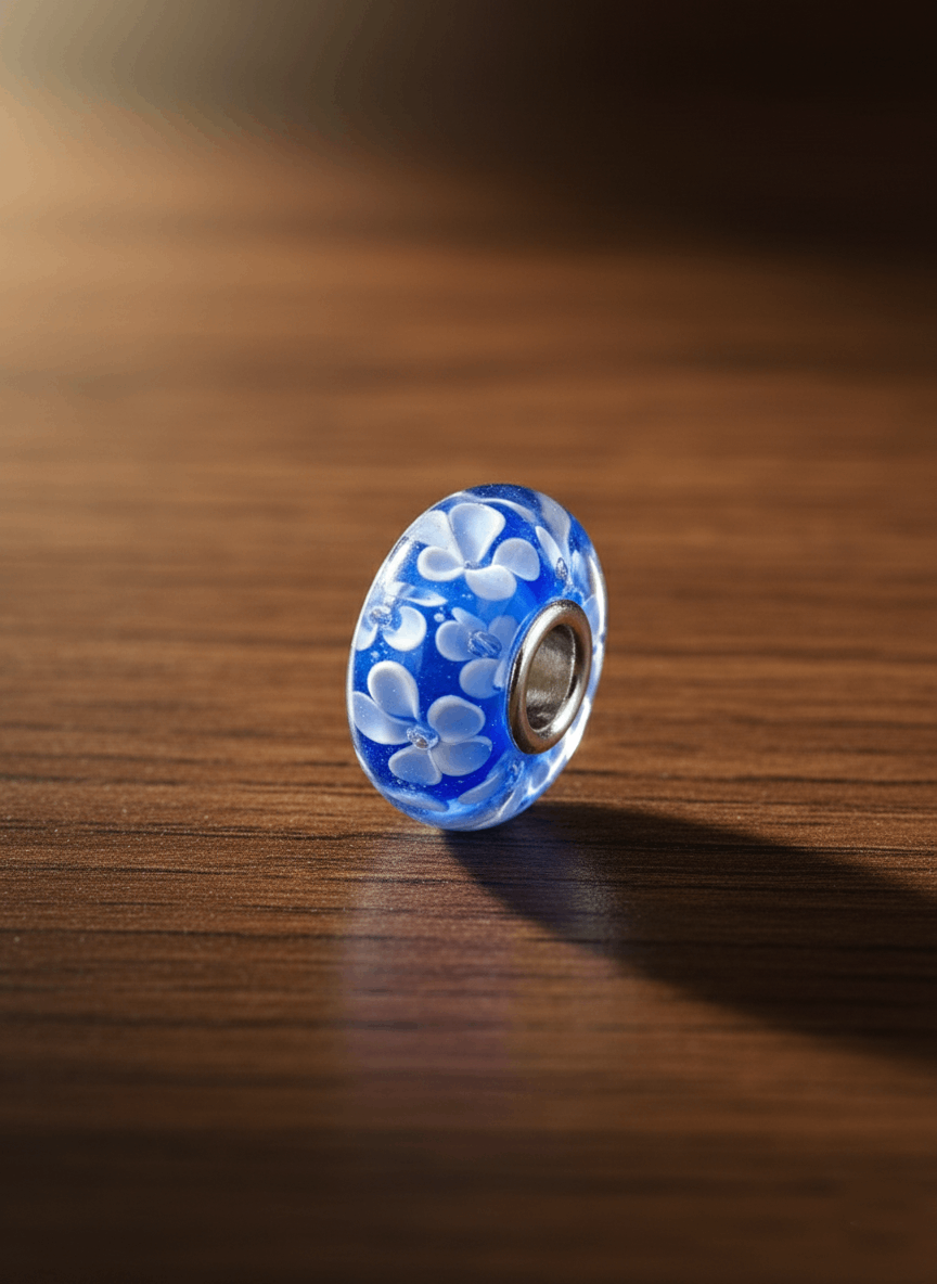 CHARM en en résine translucide bleu fleuri et alliage ZINc hypoallergénic