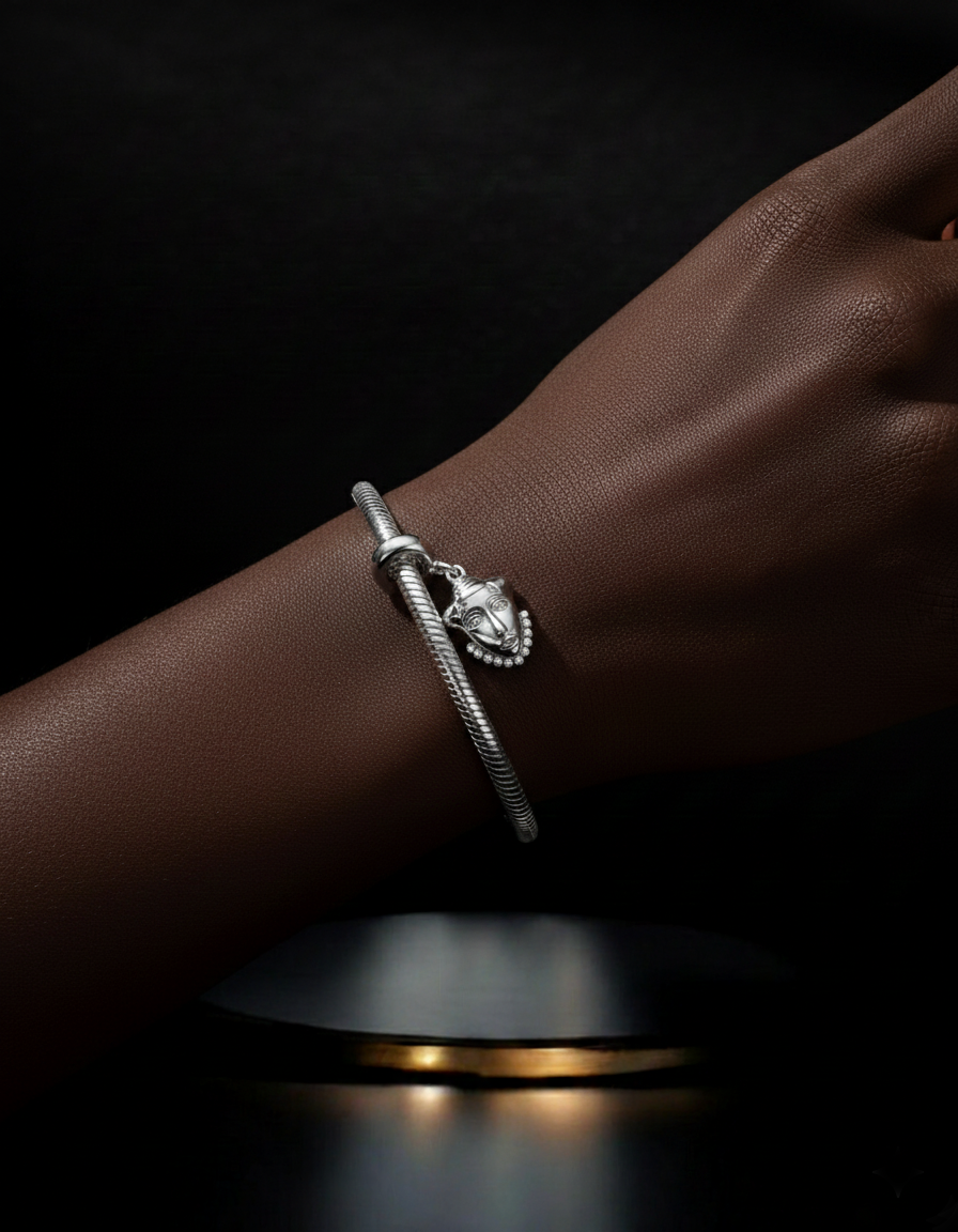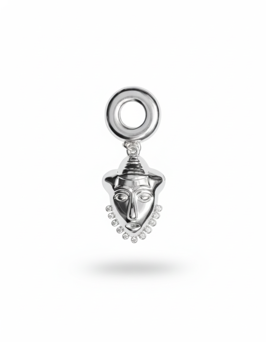 Inspiré du masque emblématique Akan , la composition Charm Yoroko Akan rhodié en plaqué or blanc + bracelet ADN plaqué or capture l’essence de l’art ancestral tout en y apportant une touche contemporaine.