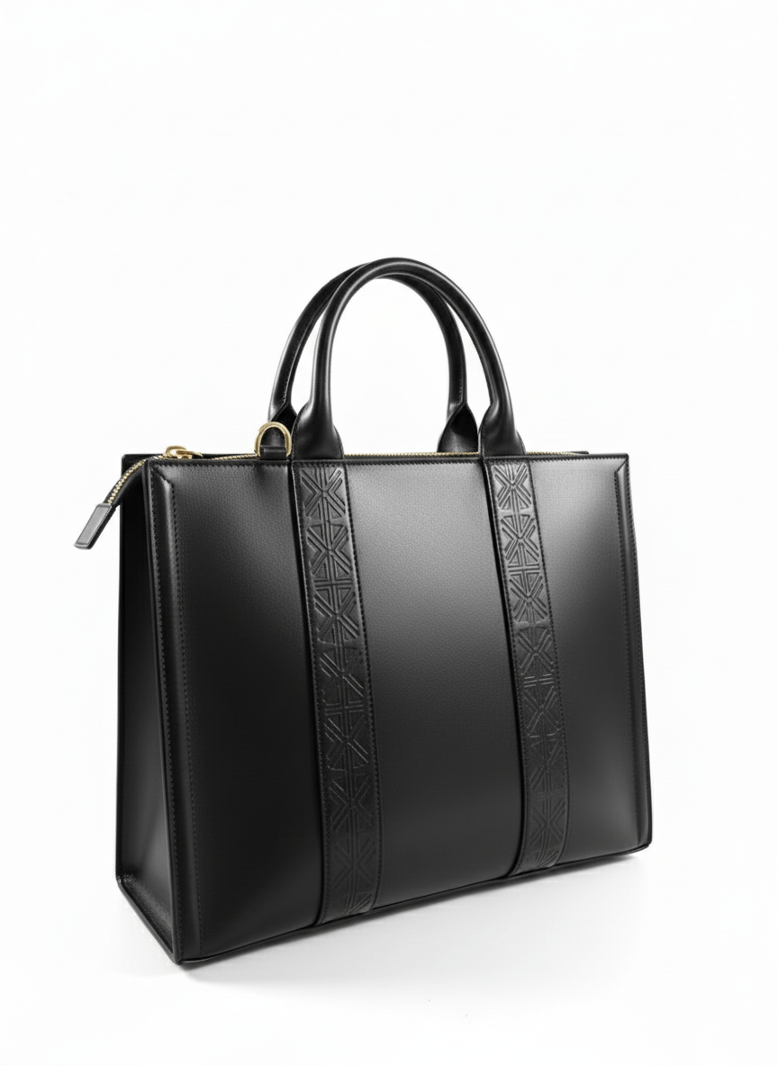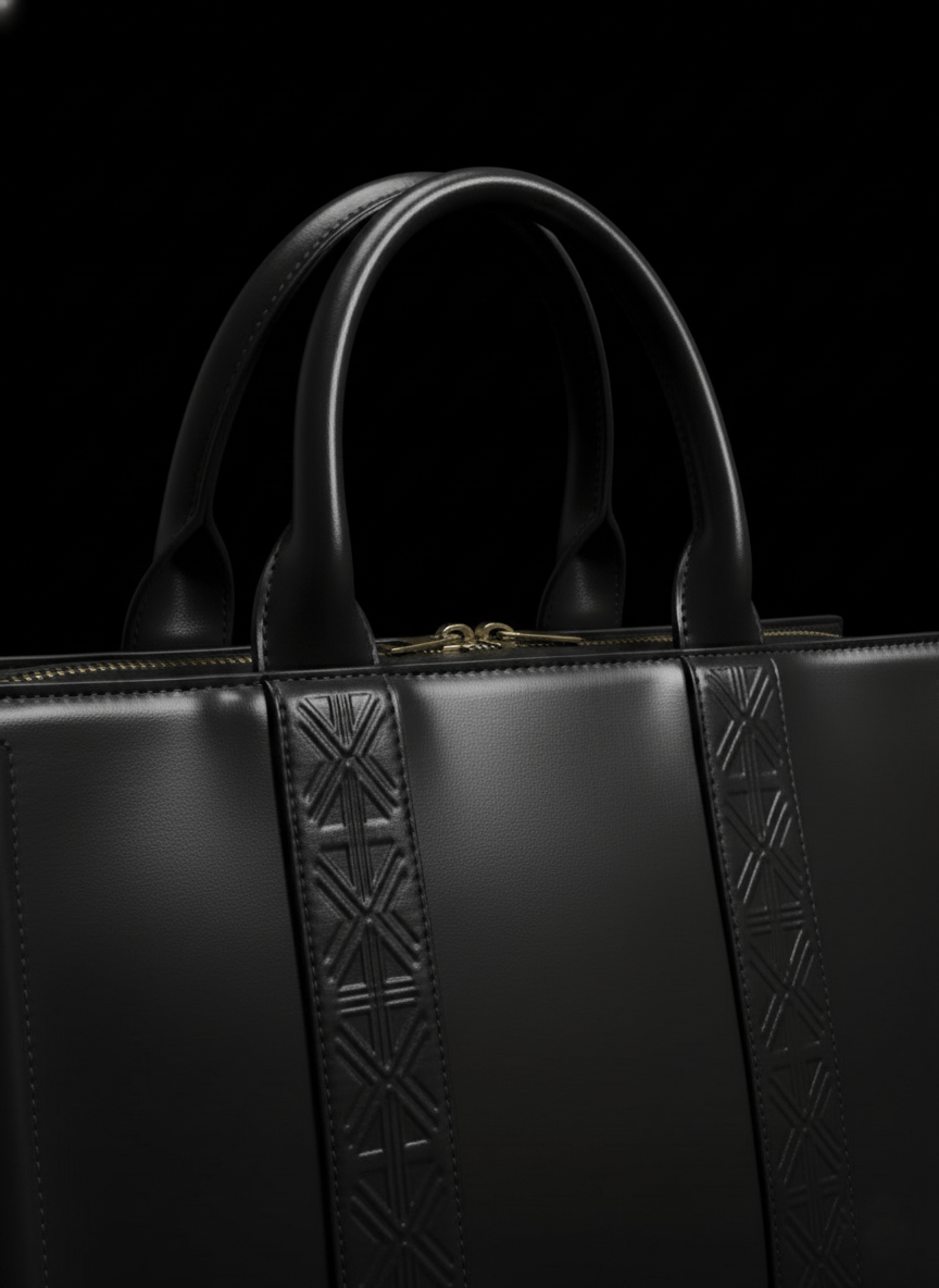 Sa ligne nette, ses anses arrondies et ses deux bandes embossées de notre motif signature en font un compagnon à la fois discret et puissant — l’incarnation de l’élégance silencieuse selon Maison INESTIMABLE.