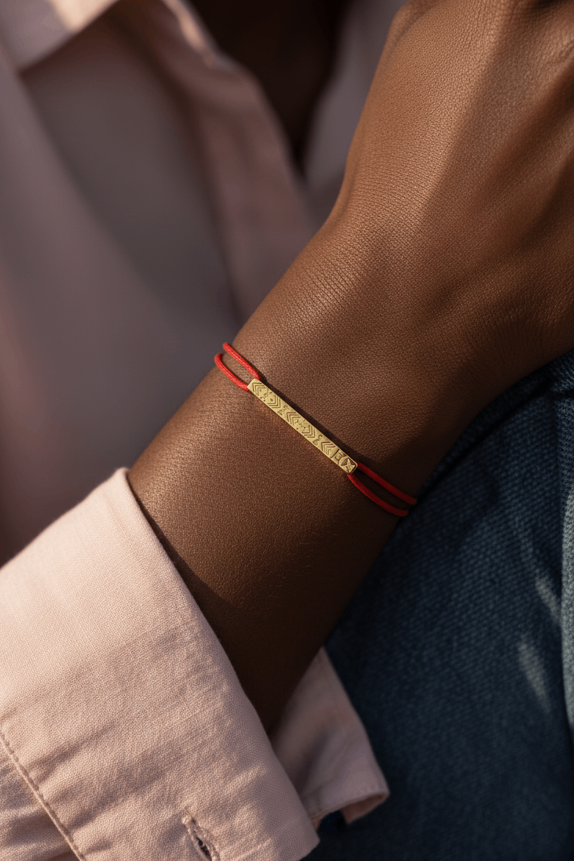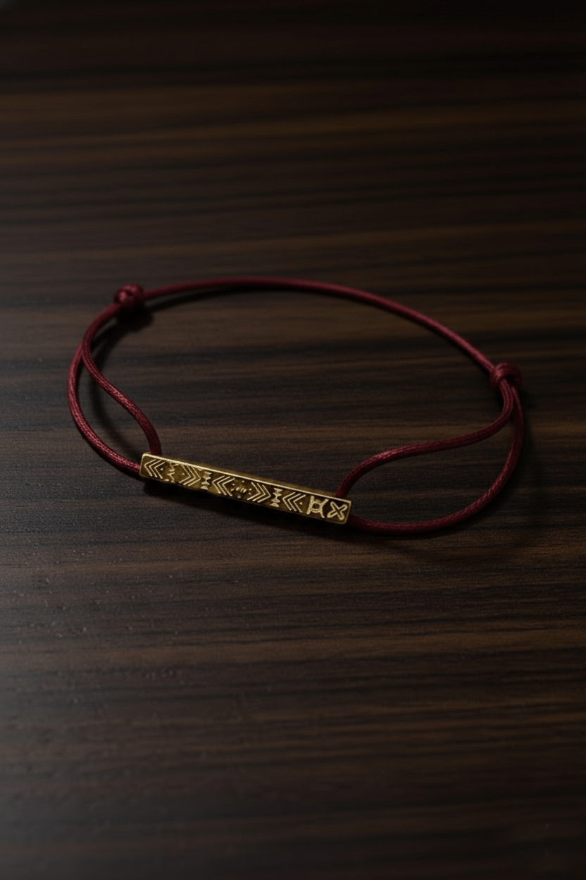 Pensé comme une sculpture portée au plus près du cœur, le bracelet Oheneba rouge bordeaux incarne la vision singulière de Maison INESTIMABLE : unir la force des symboles africains et la pureté d’une ligne contemporaine.