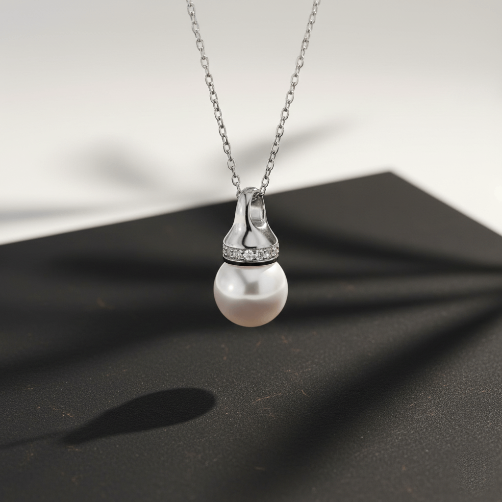 Tel une goutte précieuse, le pendentif Millenia est un bijou en plaqué or blanc 18k serti de cristaux purs autrichiens.
