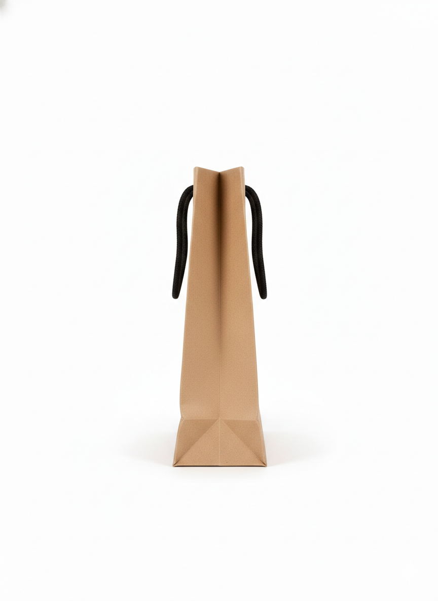 Sac cadeau de luxe papier brun avec poignées cordes coton + carte de voeux
