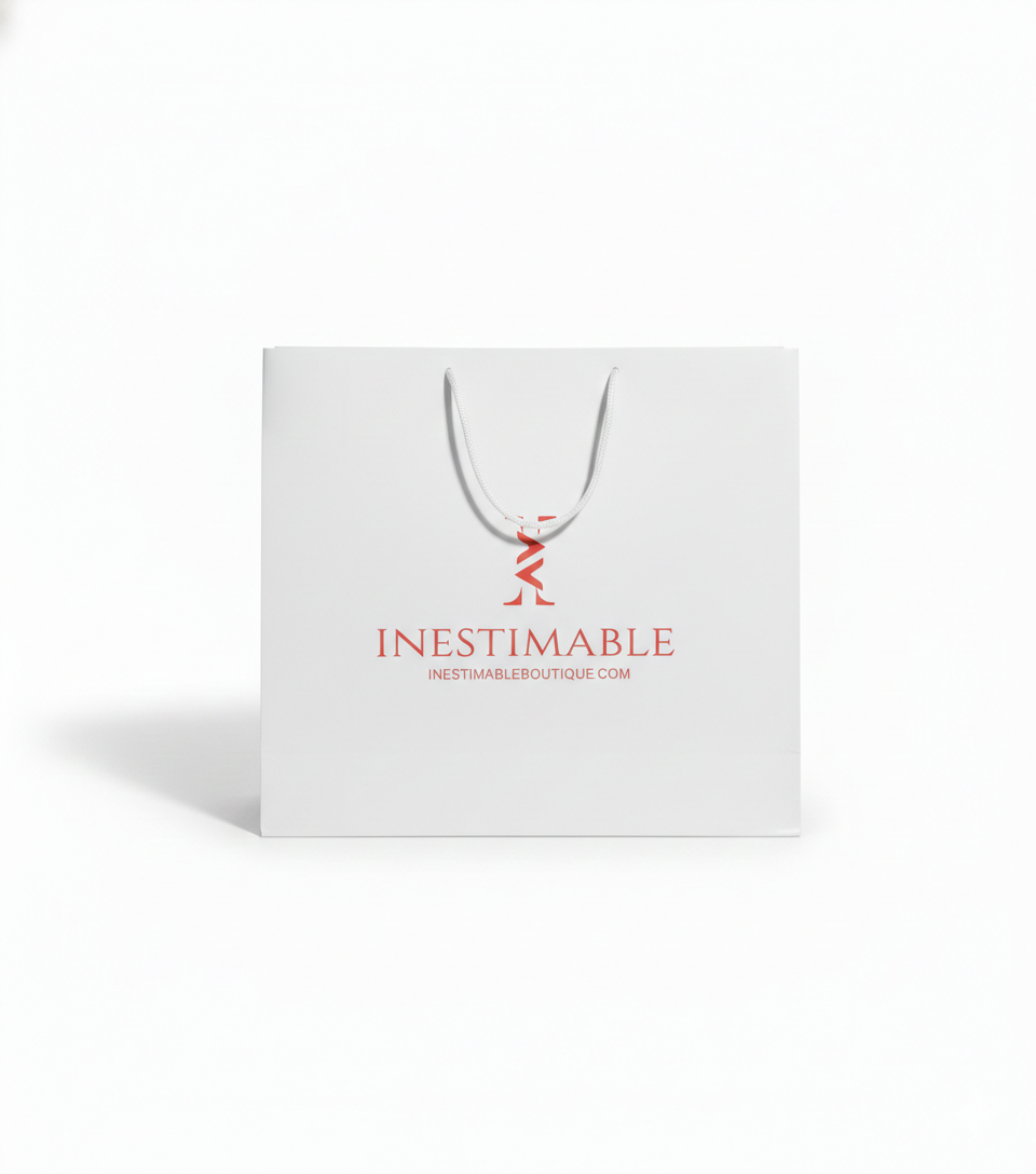 Nos emballages cadeaux sont exclusivement réservés aux achats de bijoux  de la marque et ne sont pas vendus séparément. En dehors de tout achat de bijou INESTIMABLE, nous ne saurions honorer votre commande. Dimension grand format (40 × 15 × 45 cm) adaptée aux wallets, pochons et boite à bijoux.
